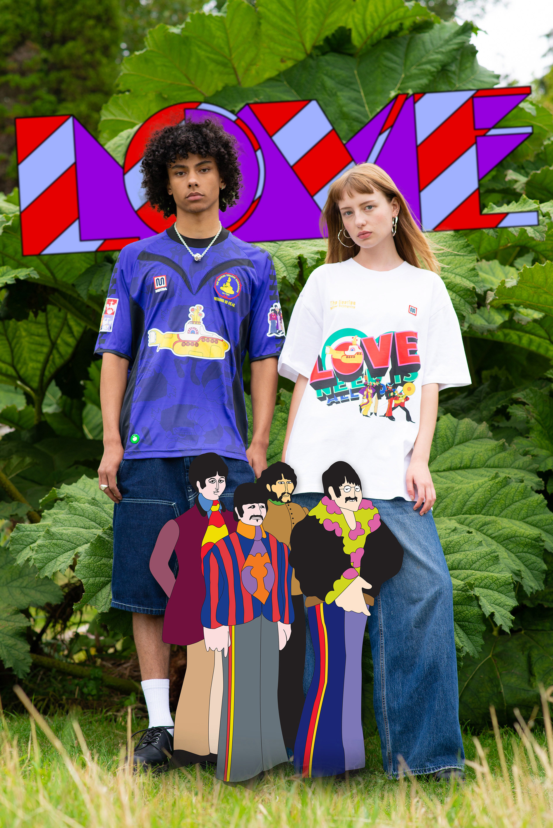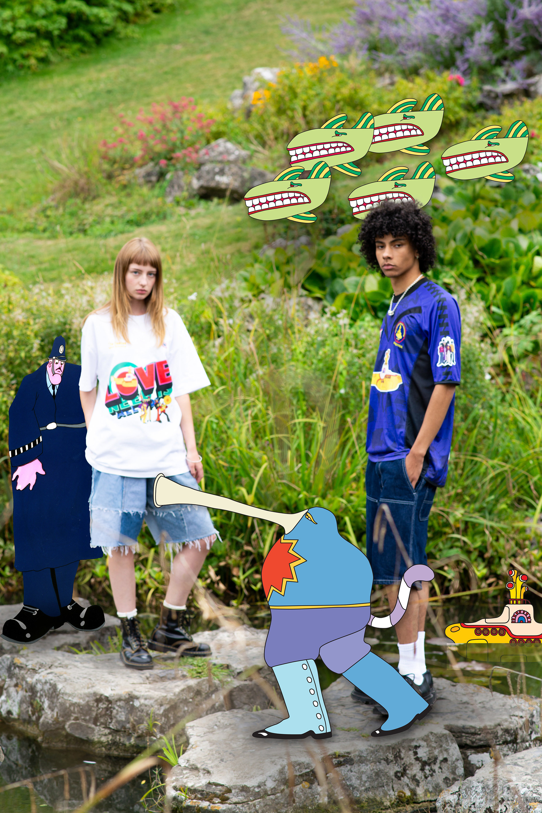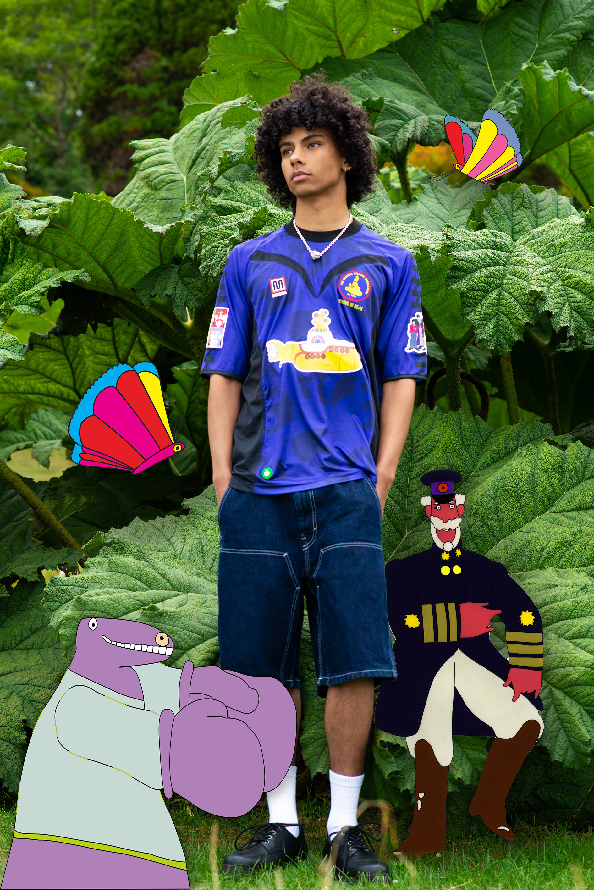The project needed to feel unmistakably Yellow Submarine — joyful, surreal and graphic — while still sitting naturally within a contemporary fashion/football photoshoot. The artwork had to enhance the imagery rather than overpower it, and remain faithful to the established visual language from the Beatles back catalogue.