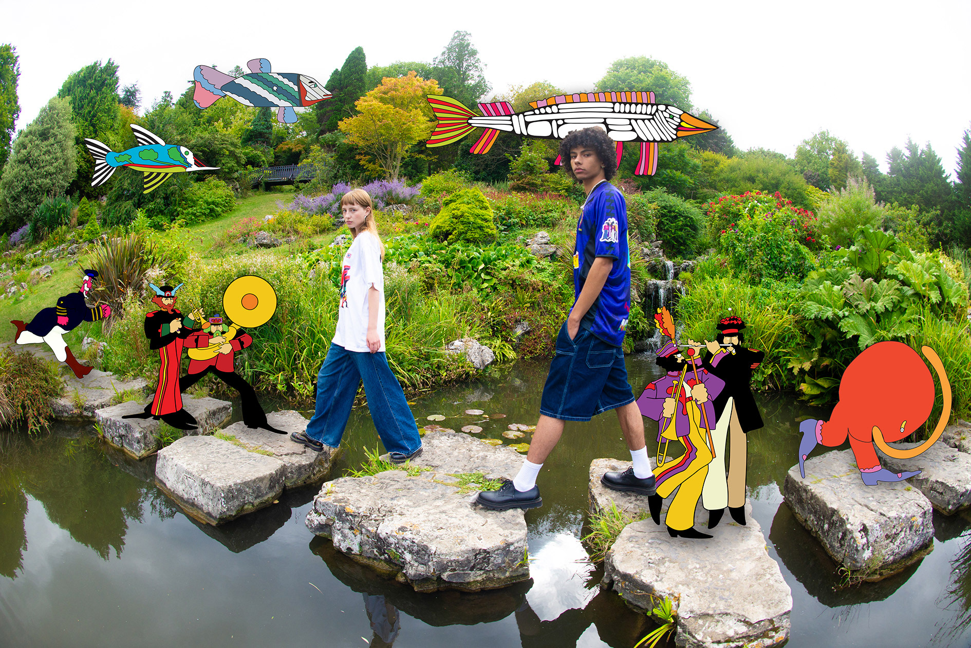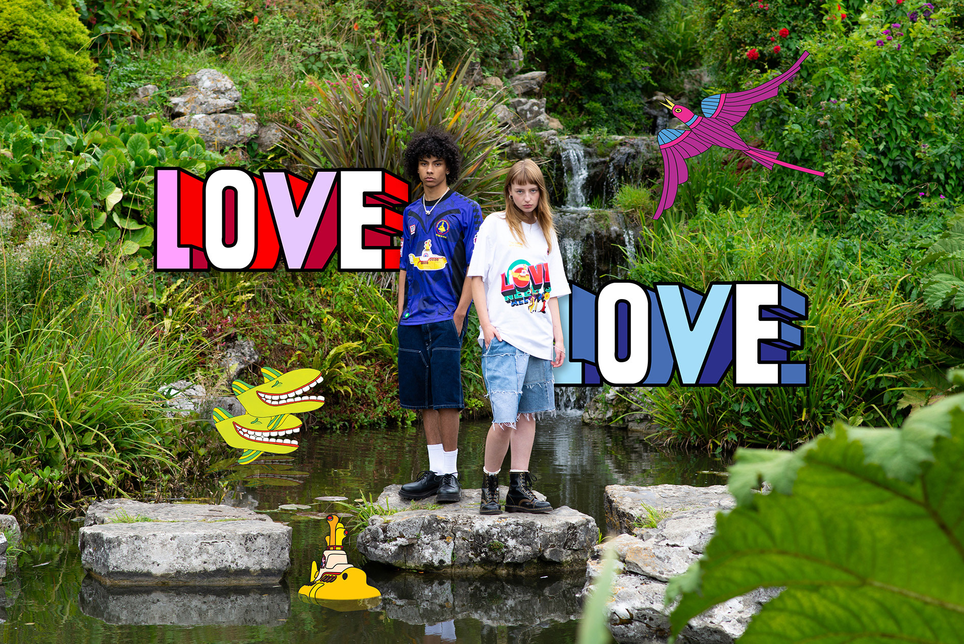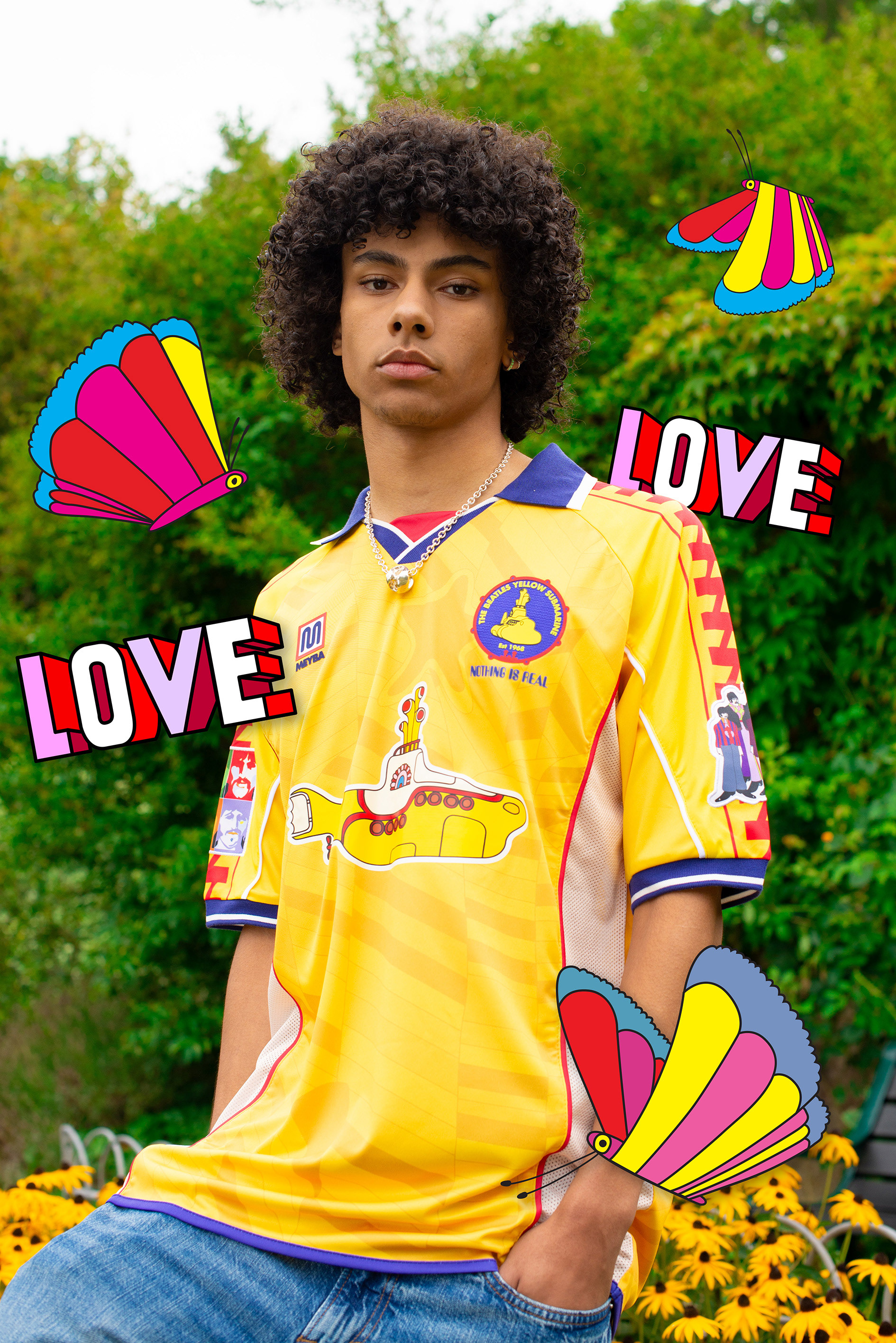 The project needed to feel unmistakably Yellow Submarine — joyful, surreal and graphic — while still sitting naturally within a contemporary fashion/football photoshoot. The artwork had to enhance the imagery rather than overpower it, and remain faithful to the established visual language from the Beatles back catalogue.
